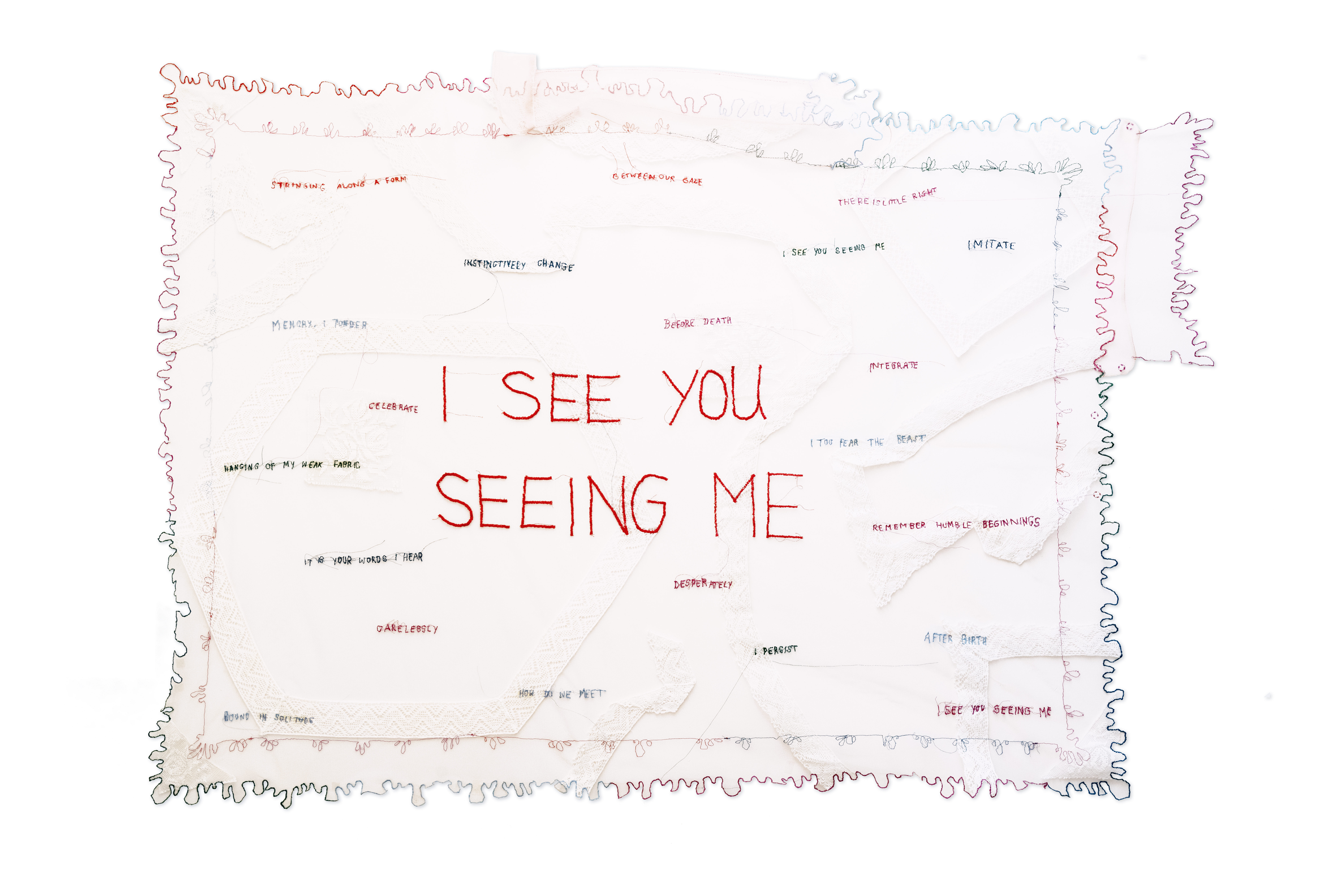 Poet Manka Menga and conceptual fashion designer Katharina Spitz collaborate to explore themes such as womanhood, social cohesion, and memory. The performative work ‘I see you seeing me’ is a combination of object, word, and embodiment.