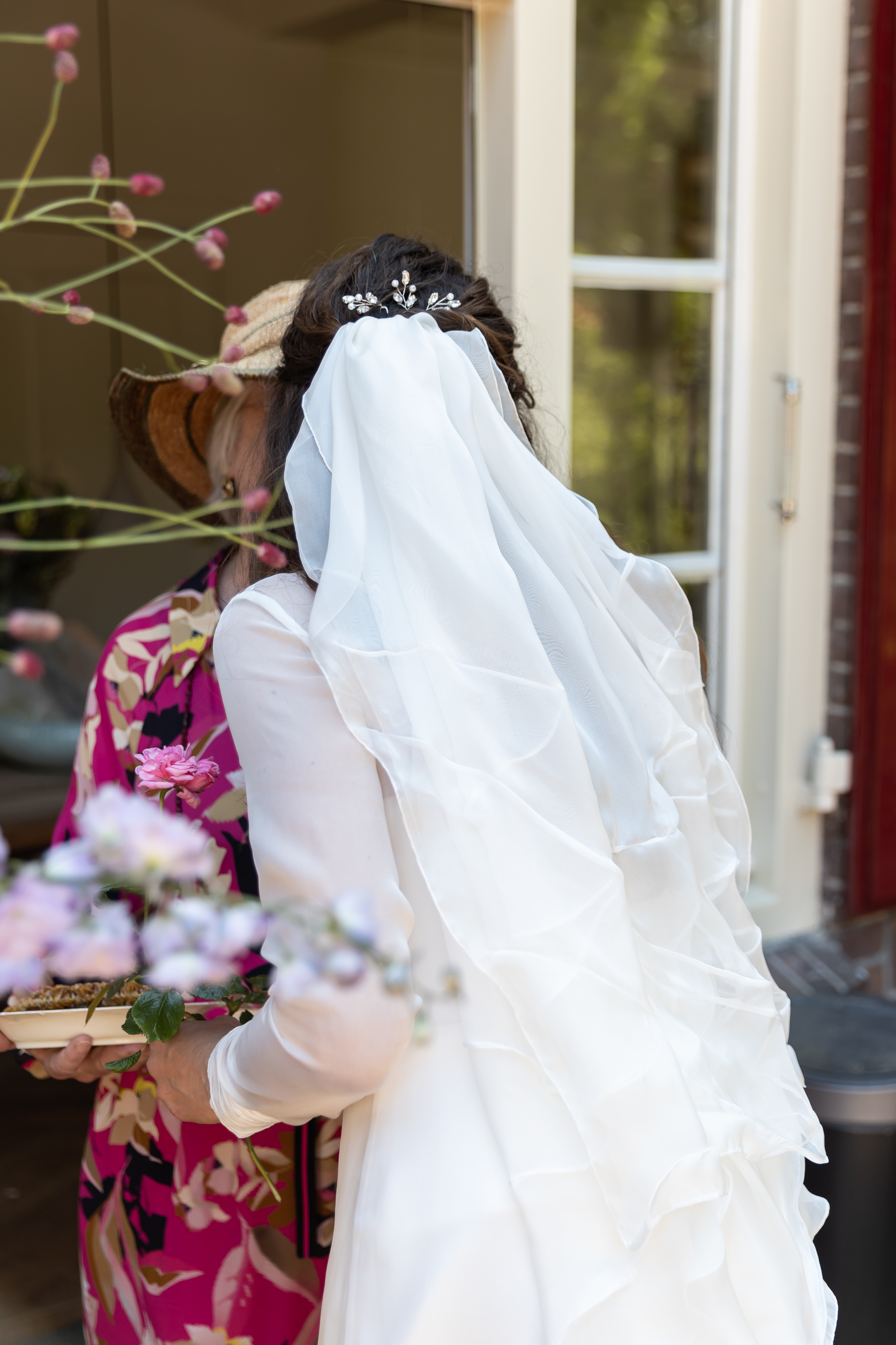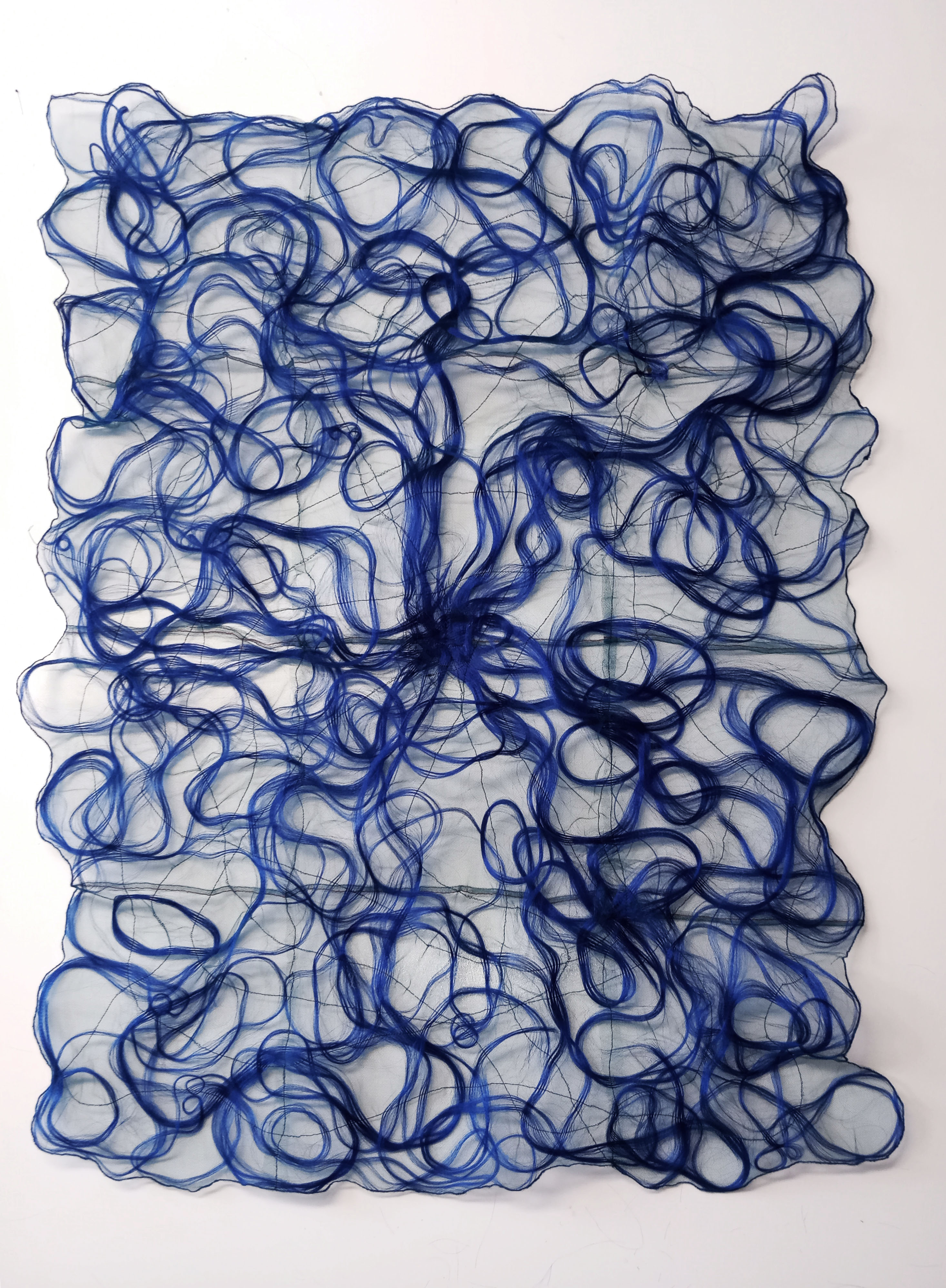 The work consists of two embroidered Khangas, a crying dress crocheted from hair and embroidered with glass beads, a hair-veil, a soundscape that includes spoken word and a lament by Sofie Schietekatte and a gestural performance.
